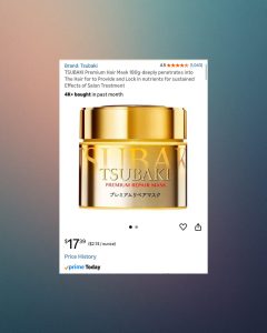 - TSUBAKI Premium Hair Mask: Cannot recommend this enough. I have straight, fine, thick Asian hair and this is the only hair mask I’ve tried that truly makes a difference. My hair is so silky soft after using this and helped to repair damage done from coloring my hair. The price on Amazon changes all the time, but it’s always right around $15-$17. 10/10 gift!